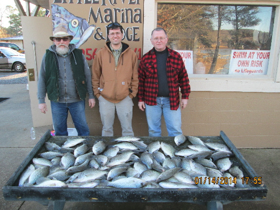 Larry,Bud and Mike with a great catch of Weiss Lake slabs, caught long line trolling with Jiffy Jigs